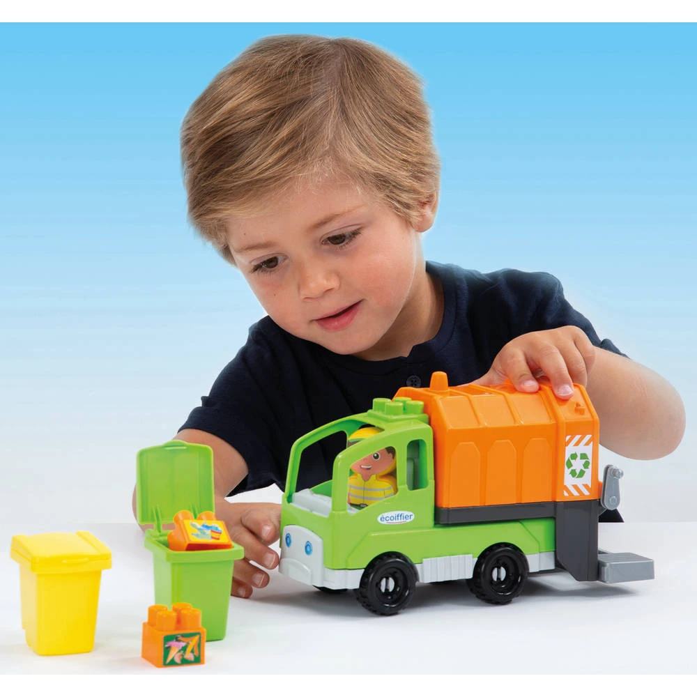Houd de omgeving schoon met deze complete Abrick vuilniswagenset. Deze bevat een vuilniswagen, twee vuilnisbakken, een berijder en accessoires.