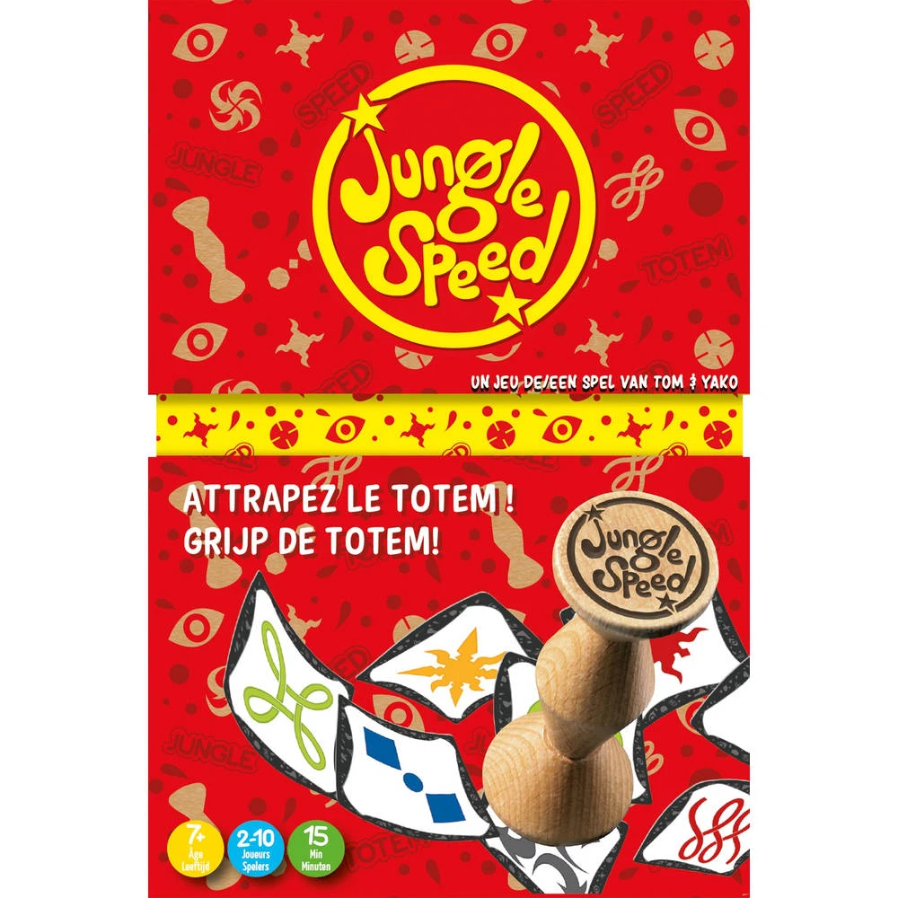 Jungle Speed is het ultieme kaartspel! Alertheid en snelheid zijn belangrijk in dit spel. Kijk aandachtig naar de kaarten op tafel. Wanneer een tegenstander een kaart omdraait waarop hetzelfde symbool staat als op jouw kaart, moet je zo snel mogelijk de totem pakken. Zo raak je jouw kaart kwijt. En dat is precies wat je wilt! Let er wel op, want sommige figuren lijken hetzelfde, maar zijn net iets anders. Weet jij dit leuke, snelle spel te winnen?