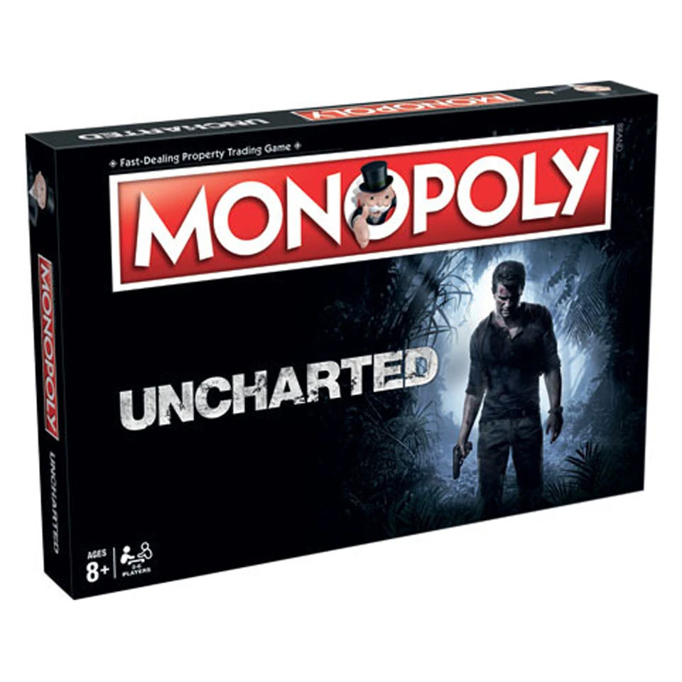 In het spel Monopoly Uncharted volg je het pad van de globetrottende held Nathan Drake. Jaag op locaties van de Uncharted games.