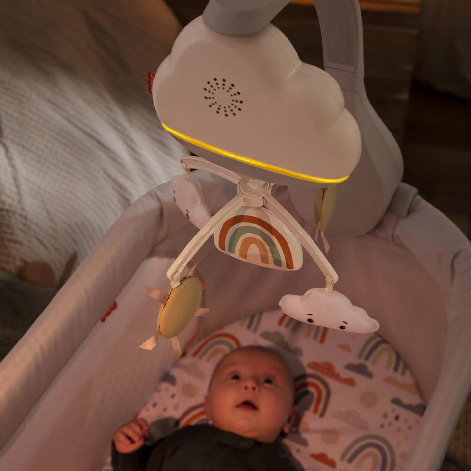 - Met deze regenboogmuziekmobiel van Fisher-Price slaapt je baby als een roos.