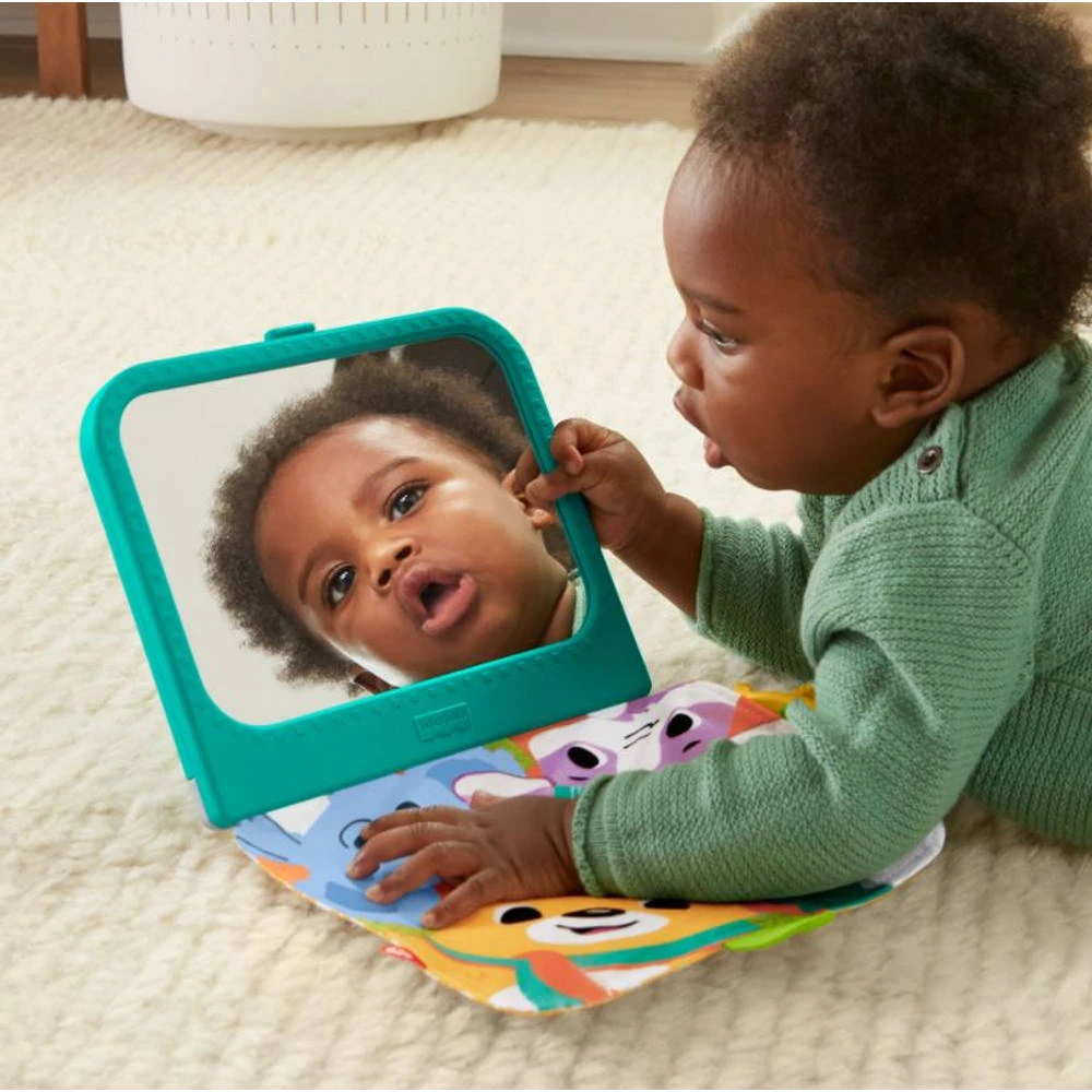 Deze Fisher-Price ritselende vriendjes activiteitenspiegel is ideaal om je baby thuis en onderweg lekker bezig te houden.