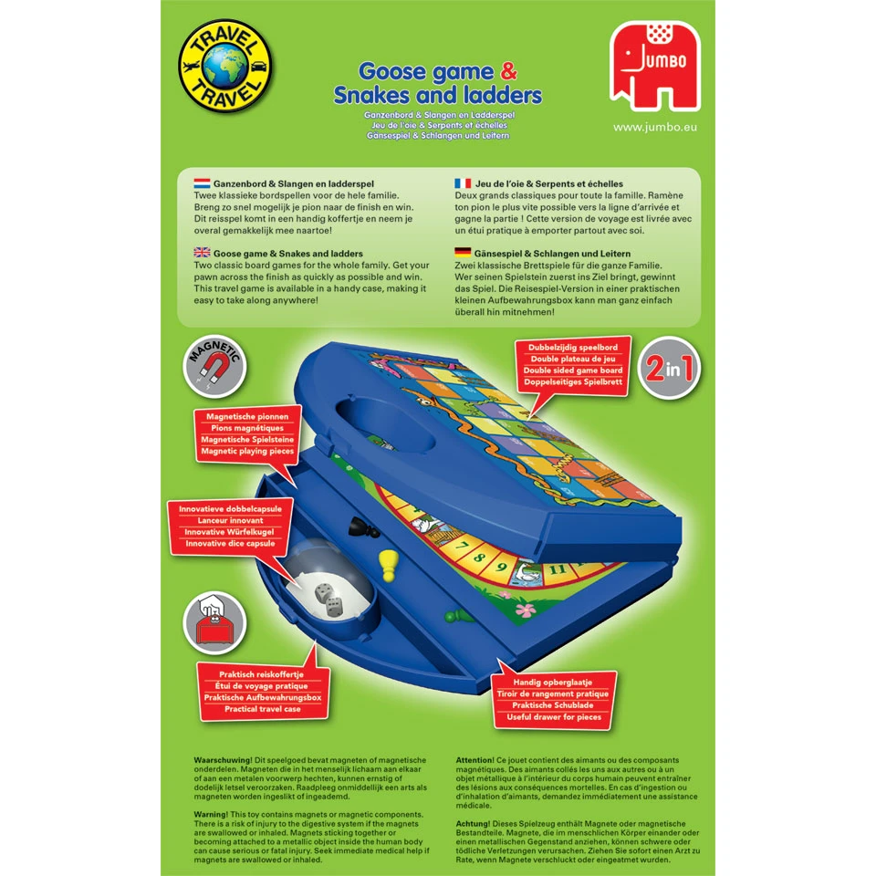 - Neem deze leuke reisset met Jumbo Ganzenbord en Slangen en Ladders mee op vakantie.