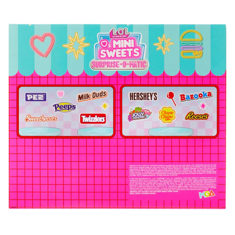 - Ontdek de L.O.L. Surprise! Loves Mini Sweets Surprise-O-Matic met snoepthema en negen verrassingen.