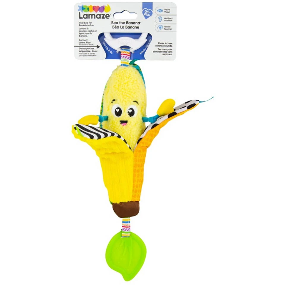 Dit Lamaze Bea the Banana hangend babyspeelgoed leert je kindje over dingen die verschijnen en verdwijnen elke keer dat je aan haar schil trekt.
