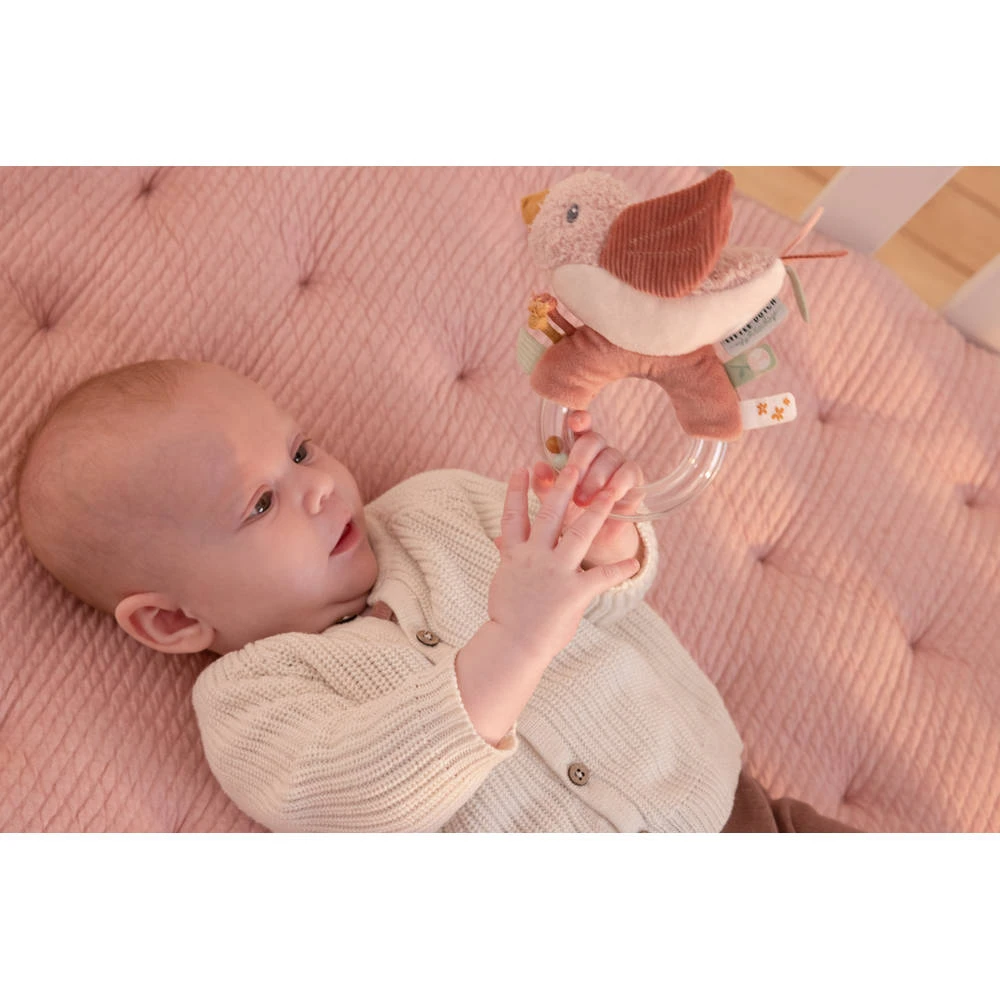 Schattige Little Dutch Flowers & Butterflies Vogel ringrammelaar in de vorm van een vogeltje die de nieuwsgierigheid van je baby prikkelt.