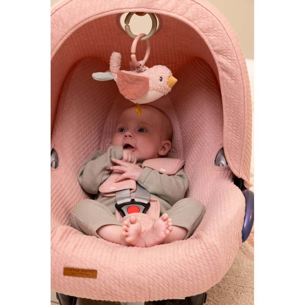 Blijf in beweging met dit Little Dutch Flowers & Butterflies vogeltrilfiguur! Dit vrolijke vogeltje is ontworpen met speelse texturen. Als je aan haar trekt dan begint ze te trillen. Dit leuke speeltje bevestig je eenvoudig aan een autostoeltje, een box of een kinderwagen. Gemaakt voor kleine handjes om vast te pakken zorgt het voor eindeloos entertainment in huis en onderweg. Gelach en gegiechel gegarandeerd.