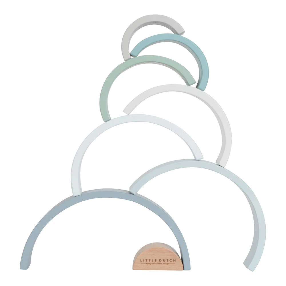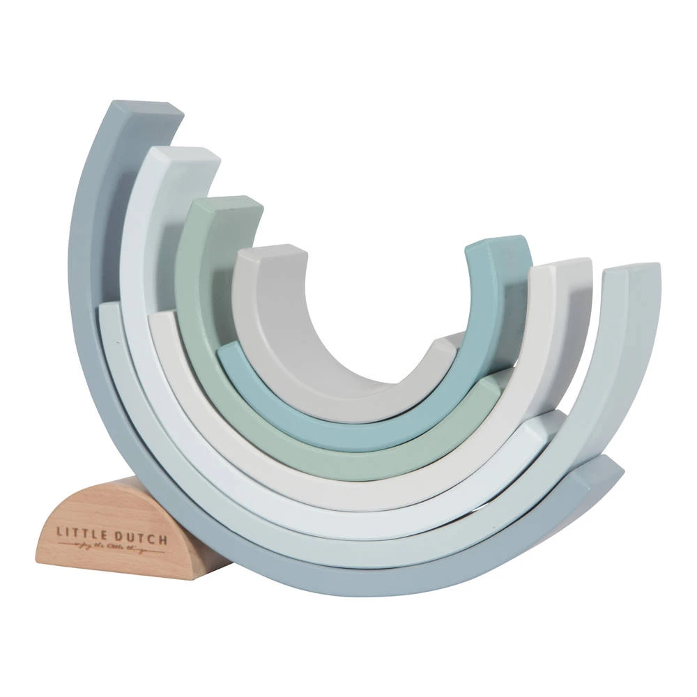 Leuke Little Dutch regenboog met een mooie, blauwe kleur. Deze regenboog is een houten stapeltoren in de vorm van een prachtige regenboog.