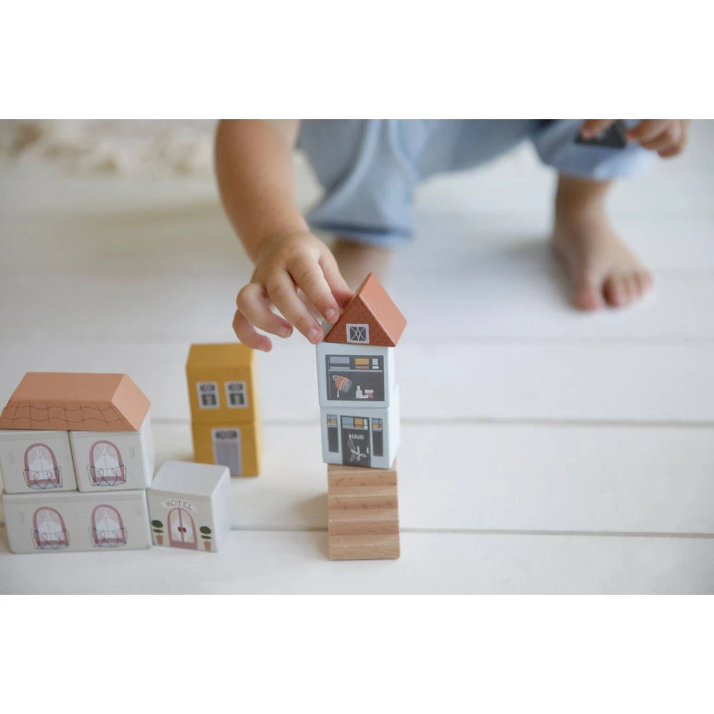 De blokkenstad van Little Dutch Little Railway Collection is ideaal om je eigen stad mee te bouwen. De set bestaat uit 50 onderdelen waarmee je onder andere winkels, een hotel en een restaurant kunt bouwen. Kinderen beleven heel veel plezier aan het bouwen met de blokken. In combinatie met de treinset XXL van Little Dutch kun je de stad helemaal afmaken.