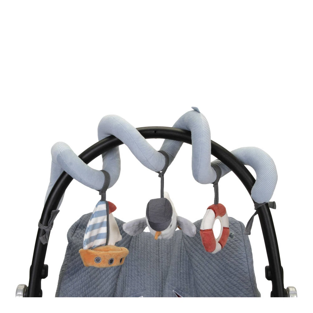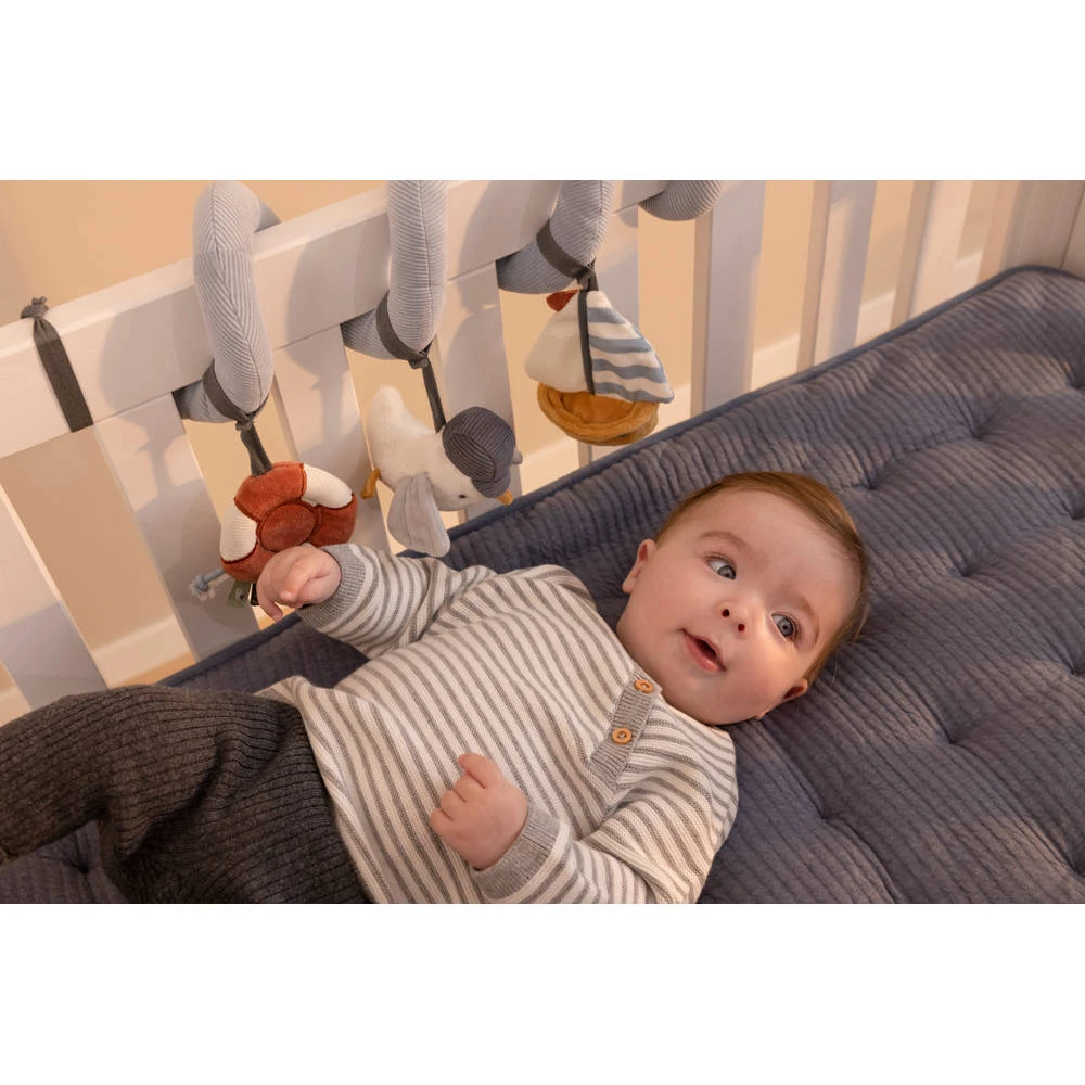 Deze Little Dutch Sailor’s Bay activiteitenspiraal is gemaakt van katoen en corduroy en beschikt over verschillende speeltjes.