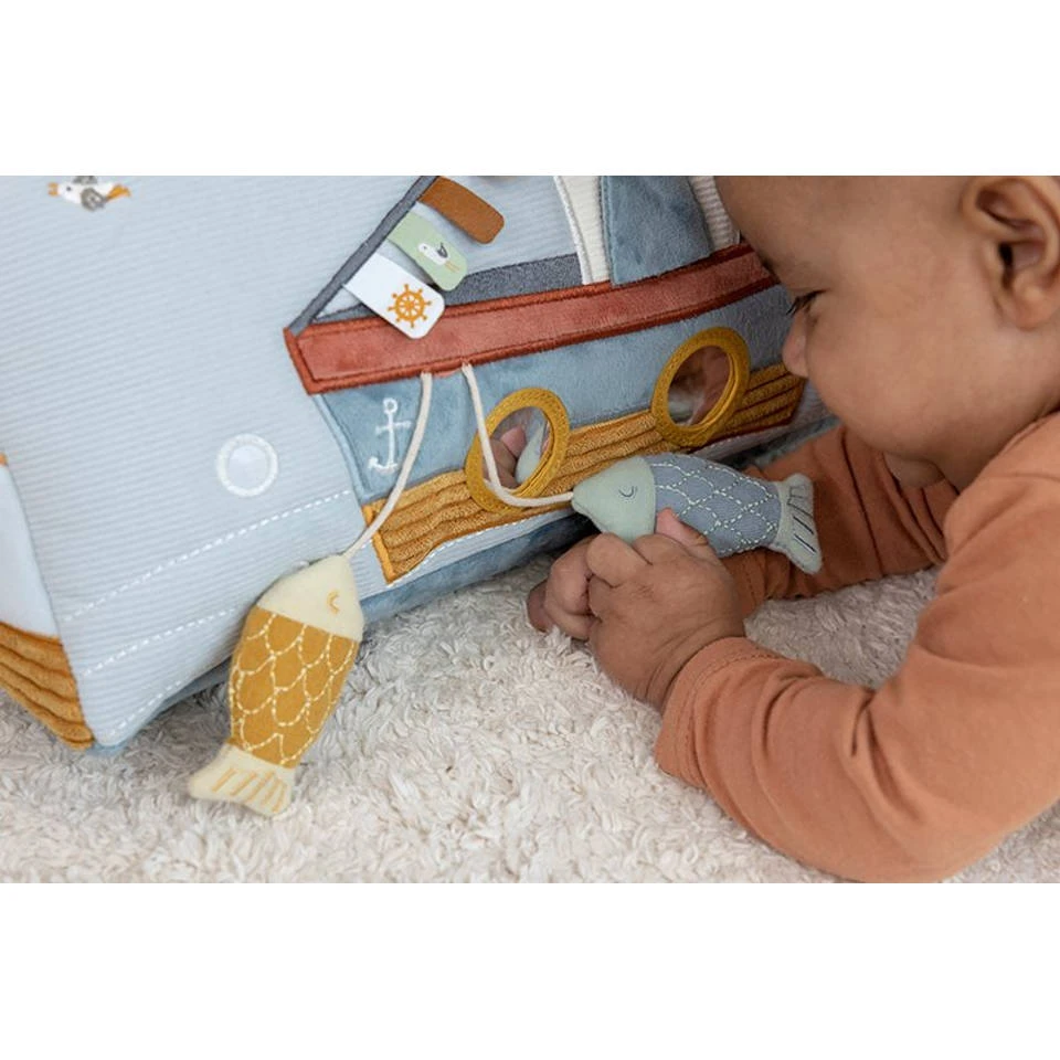 Wat zal je kindje dol zijn op deze Little Dutch Sailors Bay-activiteitendriehoek. De boot is weer terug in de haven! Deze veelzijdige activiteitendriehoek neemt kleine kinderen mee op avontuur terwijl ze op hun buik liggen. Onderweg valt er veel te ontdekken. Van knisperende vissen en spiegeltjes tot een ratelende walvis en een piepende pelikaan. Dit leuke speelgoed beschikt over speelse functies en leuke texturen die de zintuigen en verbeeldingskracht van je baby prikkelen.