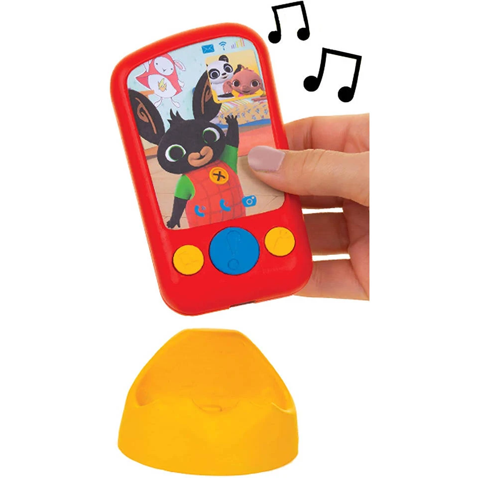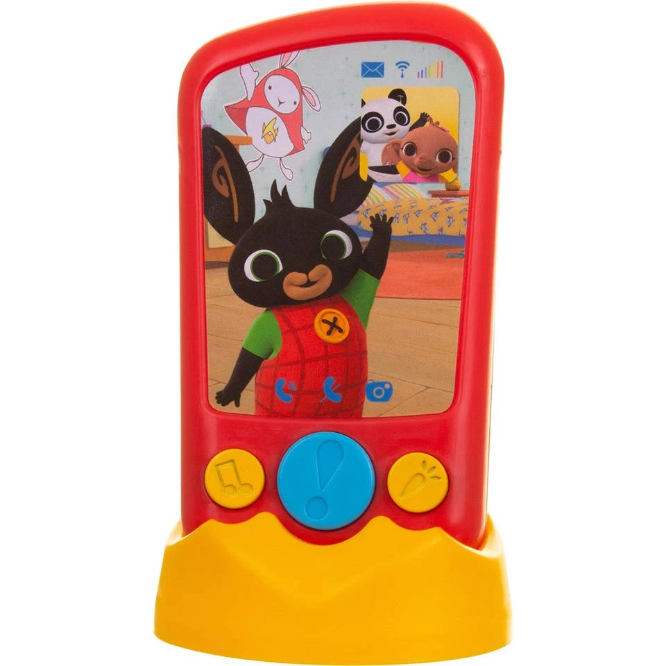 Ben je ook weg van de verhalen van Bing? Dan kun je met Bings telefoon de momenten uit de serie herbeleven. Bing is dol op bellen met zijn vriendjes! Bings telefoon heeft het perfecte formaat voor alle kleine Bing-fans! De drie stevige knoppen kunnen gemakkelijk ingedrukt worden om verschillende gesprekken tussen Bing en zijn vriendjes te activeren. Bing belt met Sula, Coco en Panda en er zijn meer dan 50 (Nederlands gesproken) zinnen uit de Bing-serie te beluisteren. Bings telefoon speelt ook muziek uit de show. Het perfecte speeltje om de hand-oog coördinatie te ondersteunen en de verbeelding aan te moedigen. Deze vrolijke en kleurrijke speelgoedtelefoon wordt geleverd met een eigen telefoonhouder. Plaats de telefoon in de houder en het telefoonvolume zal toenemen, net als bij een echte ‘handsfree’-kit. Uit de houder heeft je peuter een eigen mobiele telefoon!