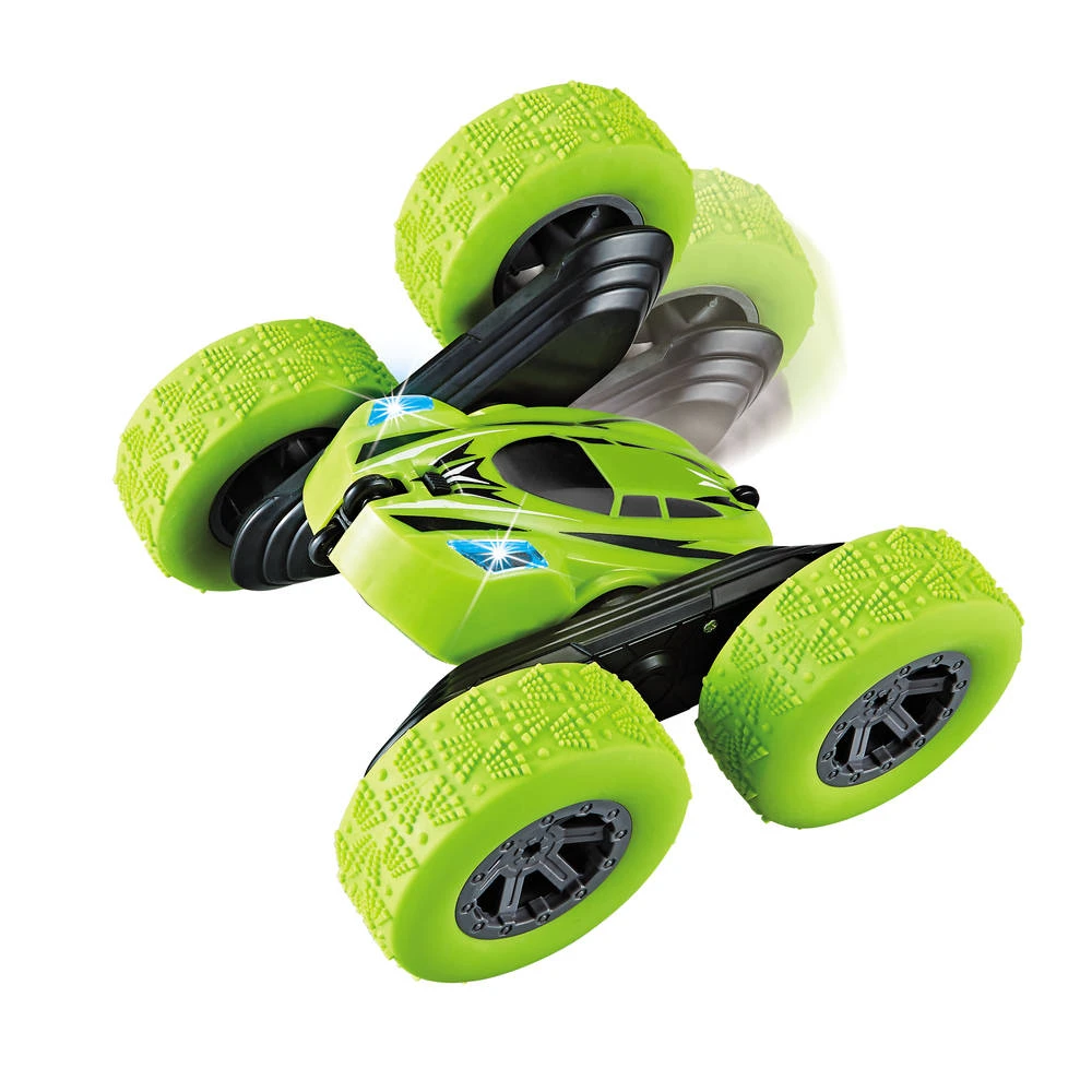 Doordat deze stuntauto 360 graden draaibaar is kun je de coolste stunts uithalen. Om de auto te laten werken heb je vier AAA batterijen nodig.