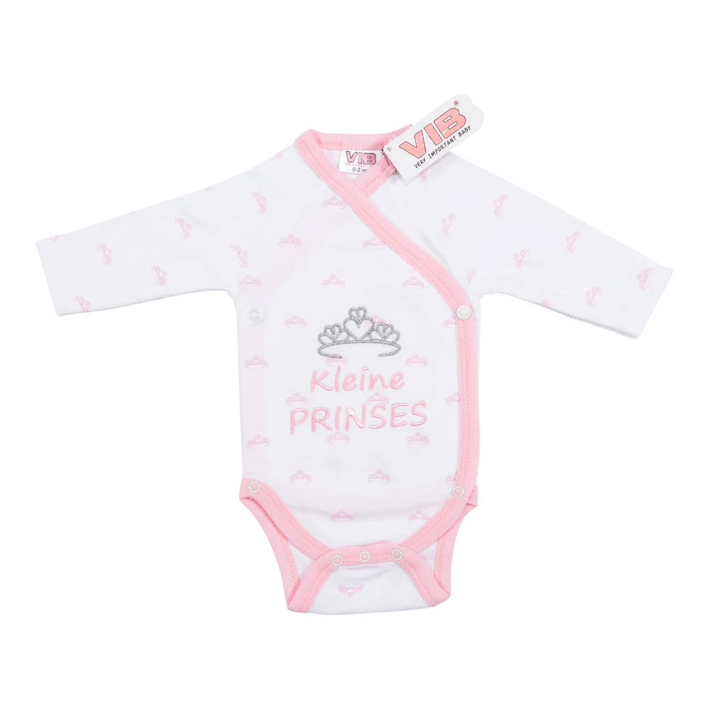 Op dit schattige VIB rompertje staat de tekst ‘kleine prinses’ en een tiara afgebeeld. Dit rompertje is er niet zomaar een, maar wordt ook wel het liefkozend ‘papa-rompertje’ genoemd. En dat is niet voor niets! Door de handige overslag is dit romperje namelijk supersnel aan te trekken en uit te doen, wat vooral voor kersverse papa’s een enorme uitkomst is. Maar niet alleen vaders zijn fan van dit rompertje, ook moeders en baby’s zijn dol op de uitstekende kwaliteit, afwerking en pasvorm. De VIB overslagromper is niet alleen functioneel, maar ook nog eens een prachtig kledingstuk voor je baby.