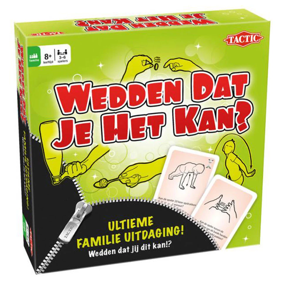 Wedden dat je het kan? is dé ultieme familieuitdaging! In dit hilarische familiespel proberen alle spelers de meest bizarre en leuke opdrachten uit te voeren, terwijl de andere spelers wedden of de speler dit succesvol kan uitvoeren of niet. Als de andere spelers goed wedden, dan winnen zij het ingezette speelgeld dubbel terug en de uitvoerende speler krijgt ook een beloning. Wedden dat jij dit kan?