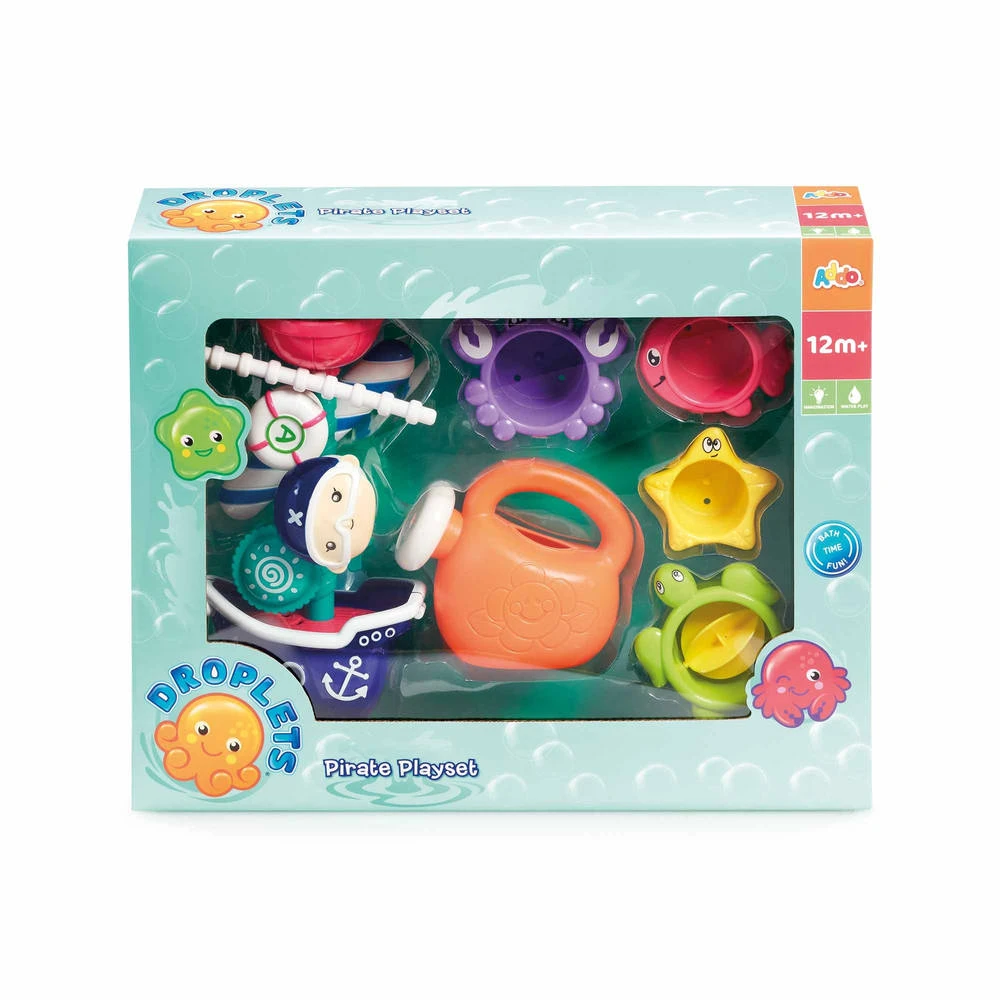 Badtijd was nog nooit zo leuk met deze mooie Droplets piraten badset! De set bevat onder meer een watertoren en vier schenkbekers.