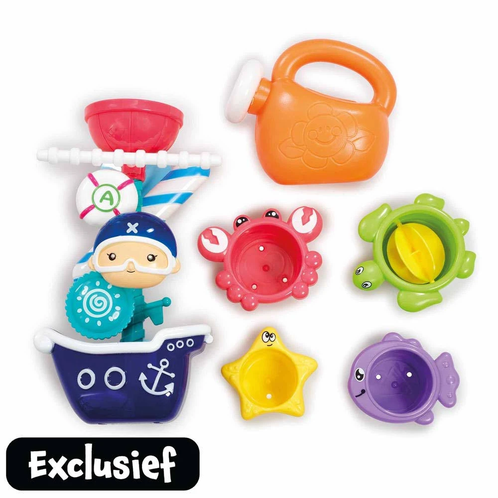 - Deze badset bevat een watertoren, gieter en vier schenkbekers.