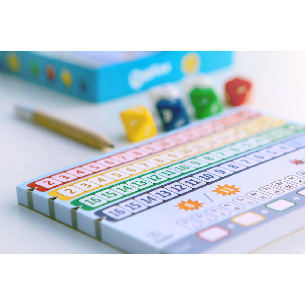 Qwixx Longo is een superleuk spel voor het hele gezin. Langere getallenrijen, 8-zijdige dobbelstenen en voor iedere speler twee unieke geluksgetallen. Dit maakt Qwixx nog leuker! Speel met de basisregels van Qwixx en probeer nog meer punten te verdienen. Snel, simpel en spannend! Elke speler probeert op zijn scoreblad zoveel mogelijk getallen in de vier kleuren aan te kruisen. Hoe meer kruisjes in een kleur, des te meer punten je krijgt. Wie aan het einde de meeste punten heeft verzameld is de winnaar.