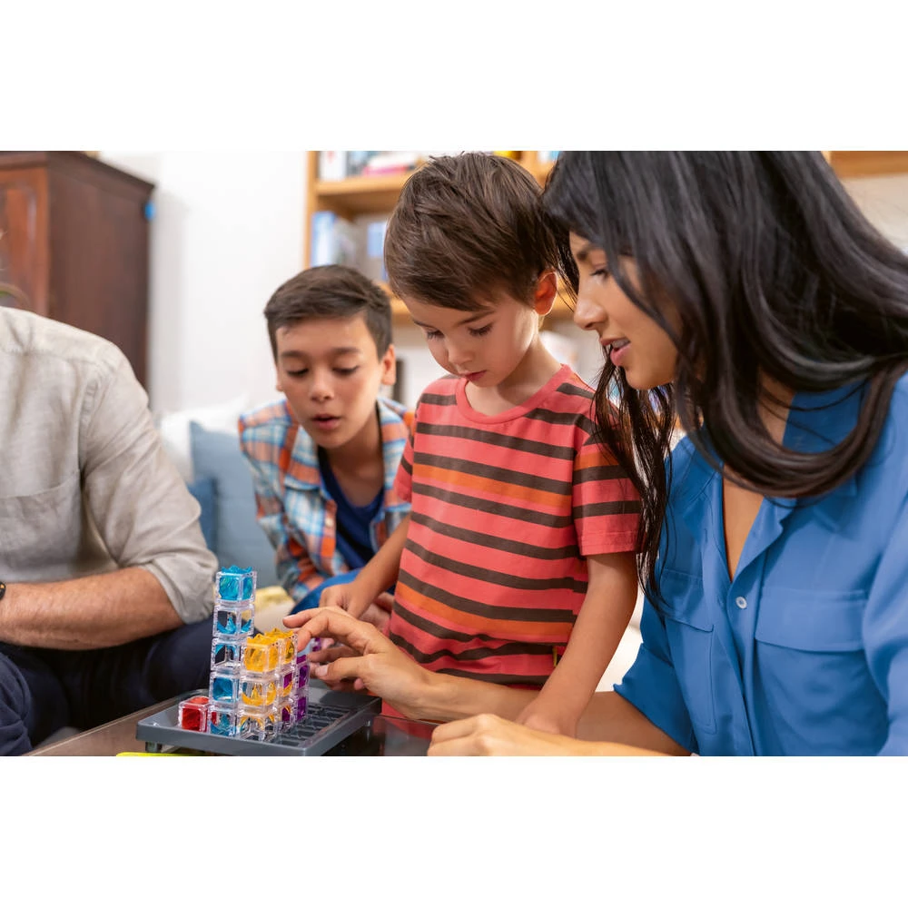 Speel dit ThinkFun Gravity Maze ’21 spel. Wie vindt een weg door de torens en rolt de kogel naar het doel? Gravity Maze stelt het voorstellingsvermogen en het logisch denken van de speler op de proef. Wie kan de transparante torens op het spelbord combineren zodat de metalen kogel door alle torens rolt en in de rode toren komt? Een echte uitdaging, want de torens van verschillende hoogte hebben binnenin gaten, schuine kanten maar ook vlakke stukken. Alleen als de speler alle torens goed met elkaar combineert, rolt de kogel via een ononderbroken weg door het labyrint.