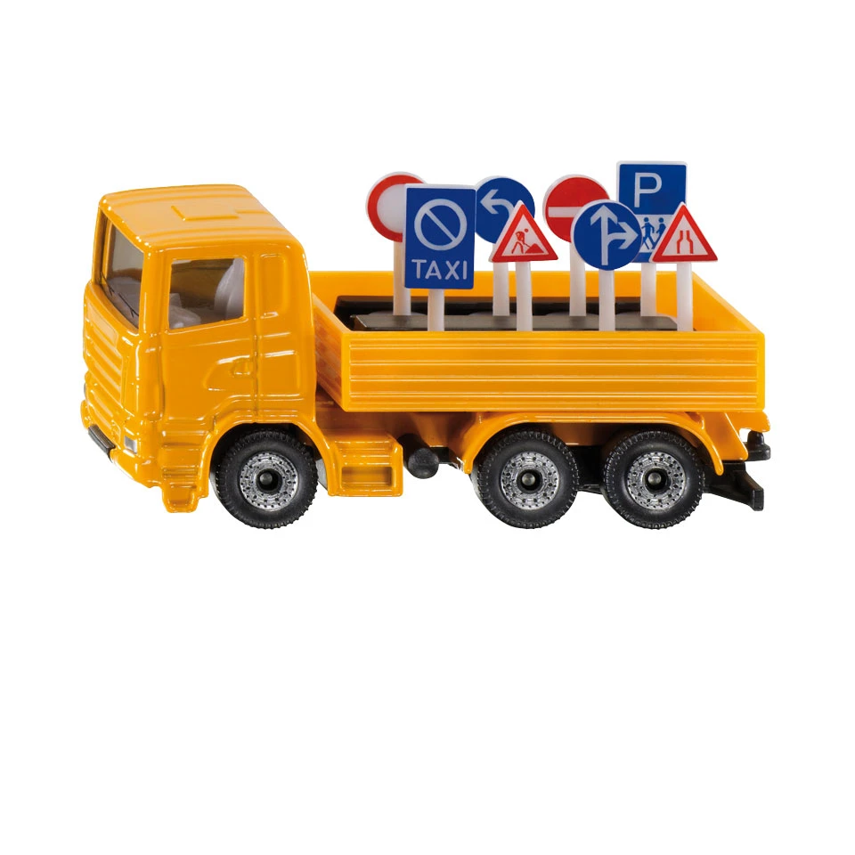 Welke coole jongen zou nou niet graag met deze vrachtauto willen rijden? Verzet bergen werk met deze leuke vrachtwagen met verkeersborden van Siku, gemaakt van stevig metaal met plastic onderdelen.
