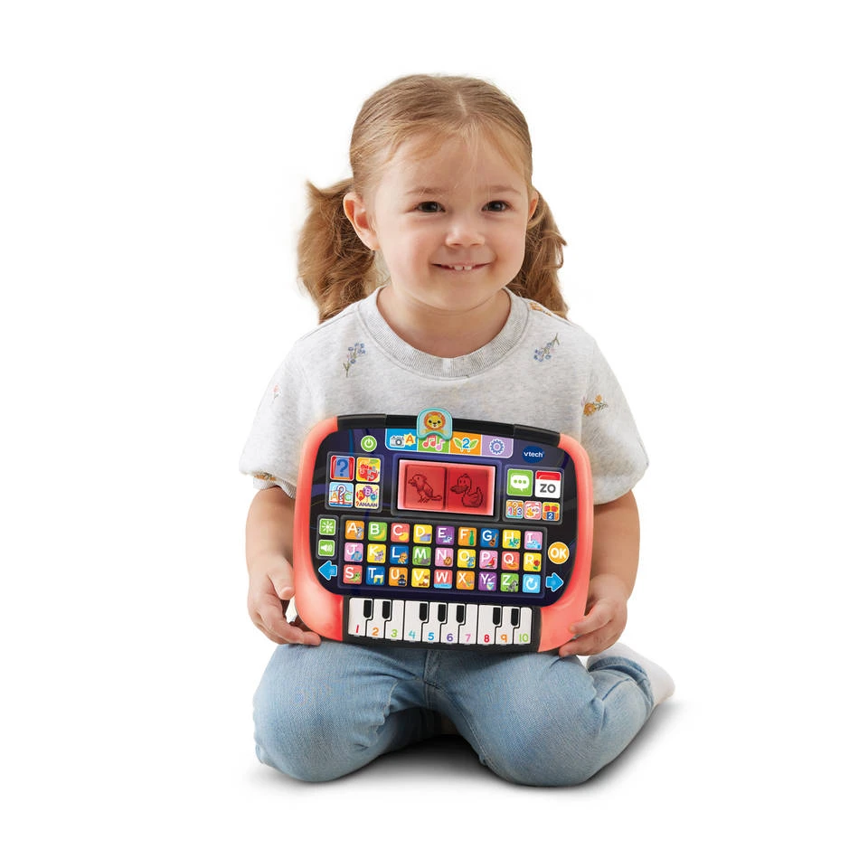 - De VTech Junior tablet is uitgerust met een ABC-toetsenbord en tien pianotoetsen.